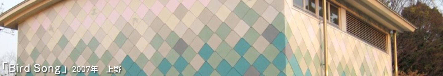 昭和の懐かしさが今だに人気の、上野動物園鳥類エリアの休憩所・売店施設などの景観リニューアル。 象設計集団による建築物における、外壁ファサードやサイン看板などによる環境グラフィック。 その場所自体がもともと持っている空間性を、深く再構成・造形し直すことで、昔からずっとそこにあったかのようでいて、新しく独特で個性的なものに。 売店正面 既成塗装鋼板を一枚一枚、映像のドットの様に配置。 サインモチーフは、ここを取りまく周囲で飼われている鳥たち 鳥たちが森の中に飛び立つかの様に この場所に元々あった色合いを分析し 馴染みながら 浮き出るような 文字たちも鳥たちと一緒になって囀り、踊る。 左からホオカザリヅル・エリマキシギ・ミヤコドリ・シュモクドリ ステンレスエッチングに塗装:見る角度によってキラキラと光り方が変わる 桜や藤が満開になると、混在していたピンクが華やかに広がる。 一年後、手前にあった機械室もグラフィック塗装することに 隣接する藤棚とも一体となった場所性を作る。 売店サインのモチーフを紋様にして展開、空間を広げる。 左からシロハラハイイロエボシドリ・カンムリシギダチョウ・ケリ・・・